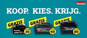 Koop tussen 1 december 2025 en 28 februari 2026 een geselecteerde Makita machine, registreer online en ontvang cadeaupunten. Kies tijdelijk één
